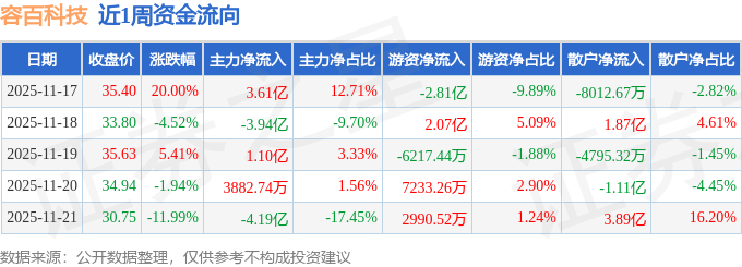 资金流向数据方面,本周容百科技主力资金合计净流出3.03亿元,游资资金合计净流出3420.57万元,散户资金合计净流入3.37亿元。本周资金流向一览见下表: