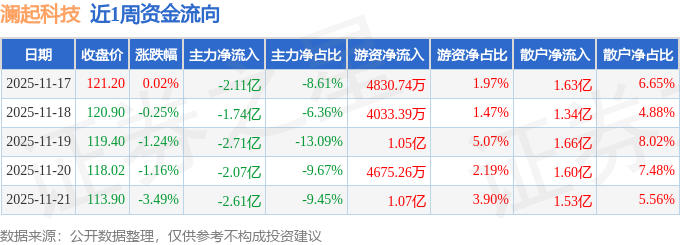 资金流向数据方面,本周澜起科技主力资金合计净流出11.24亿元,游资资金合计净流入3.48亿元,散户资金合计净流入7.76亿元。本周资金流向一览见下表: