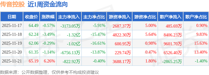 资金流向数据方面,本周传音控股主力资金合计净流出3.42亿元,游资资金合计净流入1.2亿元,散户资金合计净流入2.22亿元。本周资金流向一览见下表:
