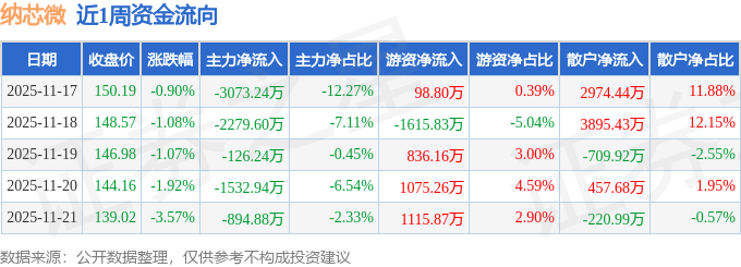 资金流向数据方面,本周纳芯微主力资金合计净流出7906.89万元,游资资金合计净流入1510.26万元,散户资金合计净流入6396.63万元。本周资金流向一览见下表: