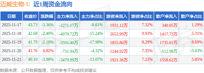 资金流向数据方面,本周迈威生物主力资金合计净流出1.41亿元,游资资金合计净流入9606.18万元,散户资金合计净流入4539.03万元。本周资金流向一览见下表: