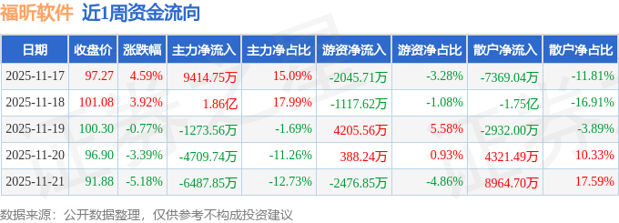 资金流向数据方面,本周福昕软件主力资金合计净流入1.56亿元,游资资金合计净流出1046.37万元,散户资金合计净流出1.45亿元。本周资金流向一览见下表: