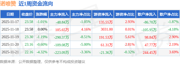 资金流向数据方面,本周诺唯赞主力资金合计净流出565.74万元,游资资金合计净流入367.33万元,散户资金合计净流入198.4万元。本周资金流向一览见下表: