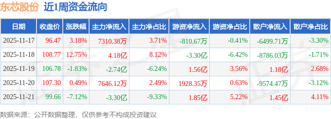 资金流向数据方面,本周东芯股份主力资金合计净流出3678.67万元,游资资金合计净流入2219.04万元,散户资金合计净流入1459.63万元。本周资金流向一览见下表: