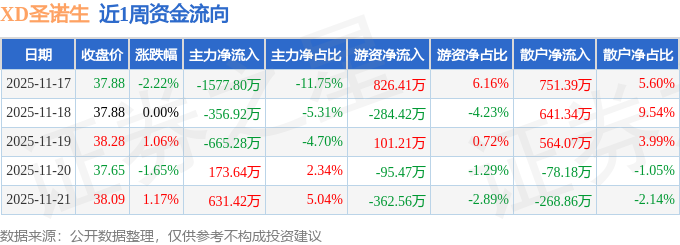 资金流向数据方面,本周圣诺生物主力资金合计净流出1794.93万元,游资资金合计净流入185.16万元,散户资金合计净流入1609.77万元。本周资金流向一览见下表: