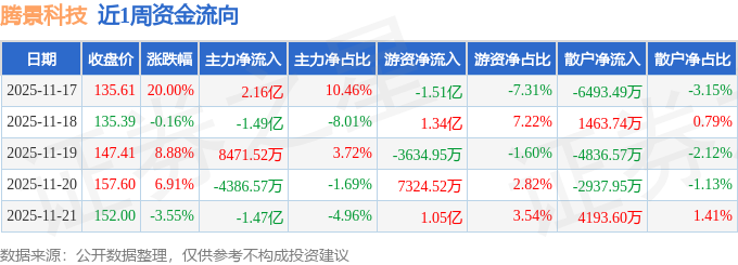 资金流向数据方面,本周腾景科技主力资金合计净流出3914.16万元,游资资金合计净流入1.25亿元,散户资金合计净流出8610.68万元。本周资金流向一览见下表: