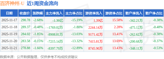 资金流向数据方面,本周百济神州主力资金合计净流出3.99亿元,游资资金合计净流入4.15亿元,散户资金合计净流出1628.74万元。本周资金流向一览见下表: