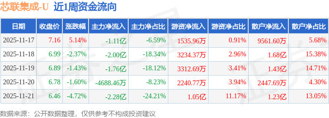 资金流向数据方面,本周芯联集成主力资金合计净流出7.62亿元,游资资金合计净流入2.08亿元,散户资金合计净流入5.54亿元。本周资金流向一览见下表: