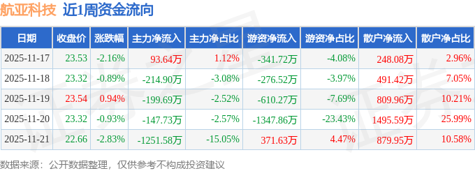 资金流向数据方面,本周航亚科技主力资金合计净流出1720.26万元,游资资金合计净流出2204.74万元,散户资金合计净流入3925.0万元。本周资金流向一览见下表: