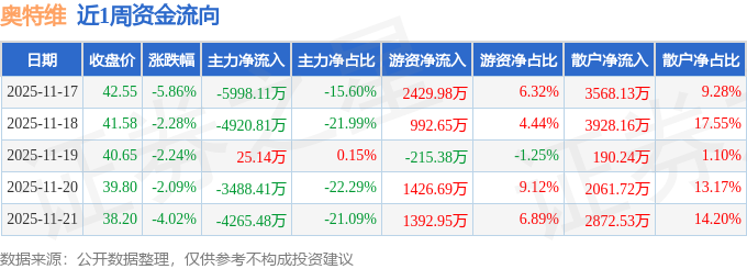 资金流向数据方面,本周奥特维主力资金合计净流出1.86亿元,游资资金合计净流入6026.89万元,散户资金合计净流入1.26亿元。本周资金流向一览见下表: