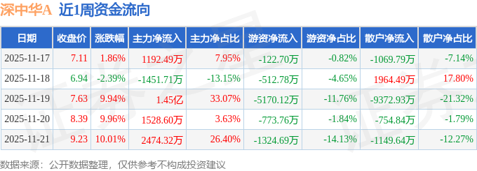 资金流向数据方面,本周深中华A主力资金合计净流入1.83亿元,游资资金合计净流出7904.05万元,散户资金合计净流出1.04亿元。本周资金流向一览见下表: