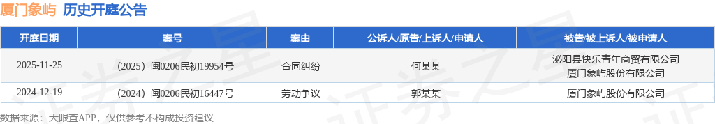 根据统计,近一年内以厦门象屿股份有限公司为当事人的历史开庭公告有2则,其中案由为“劳动争议”的公告以1则居首,其次为“合同纠纷”有1则。历史开庭公告如下: