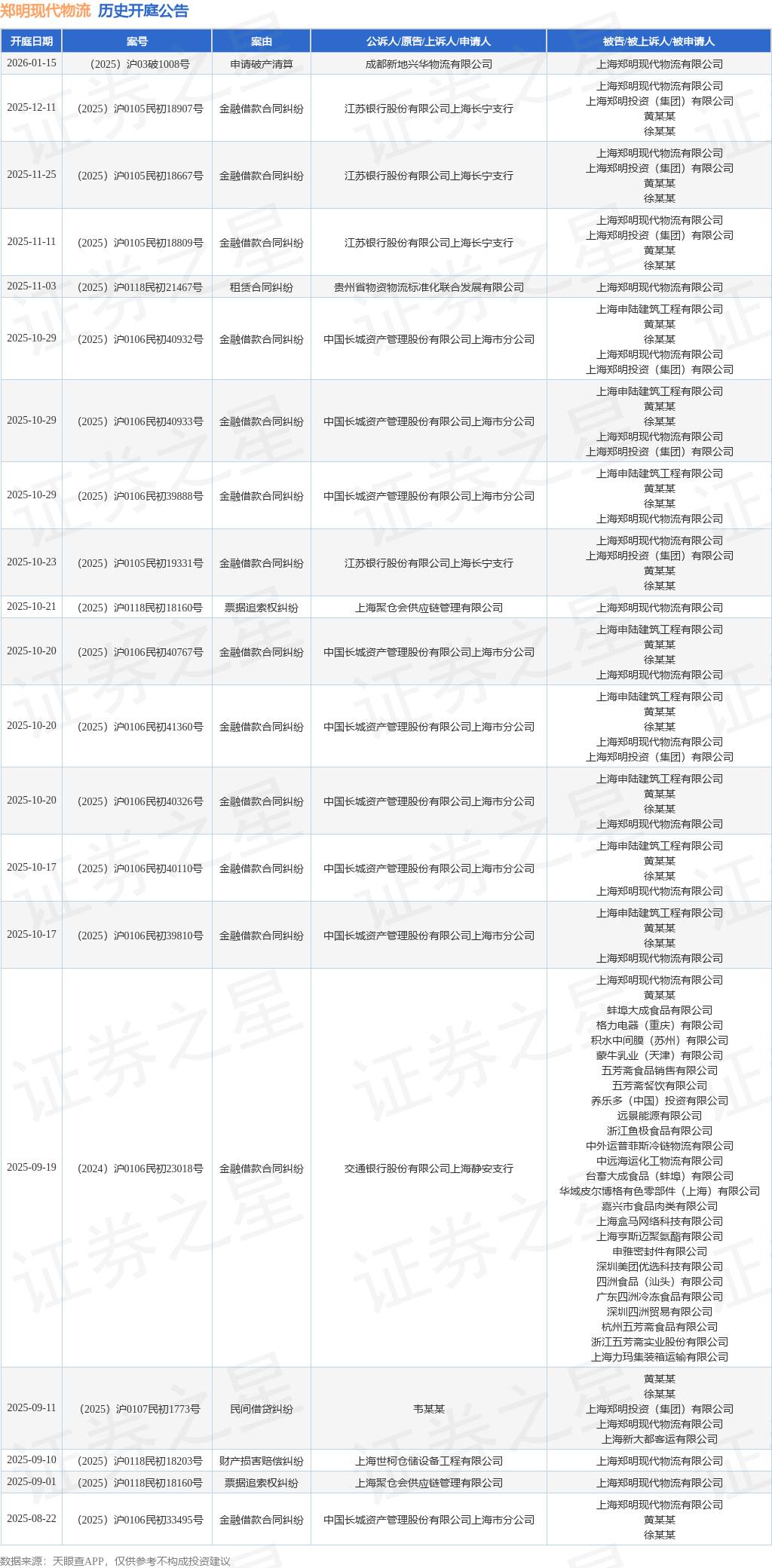 证券之星消息,根据天眼查APP显示,近日公布了一则上海郑明现代物流有限公司作为被告/被上诉人的开庭公告,详细内容如下: