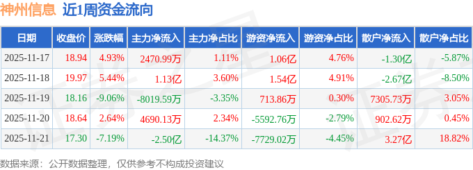 资金流向数据方面,本周神州信息主力资金合计净流出1.45亿元,游资资金合计净流入1.34亿元,散户资金合计净流入1150.51万元。本周资金流向一览见下表: