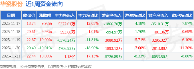 资金流向数据方面,本周华瓷股份主力资金合计净流入6667.83万元,游资资金合计净流出3614.51万元,散户资金合计净流出3053.32万元。本周资金流向一览见下表: