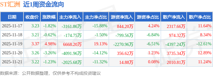 沪深股通持股方面,截止2025年11月21日收盘,ST汇洲深股通持股数为1974.65万股,占流通股比为99.0%。