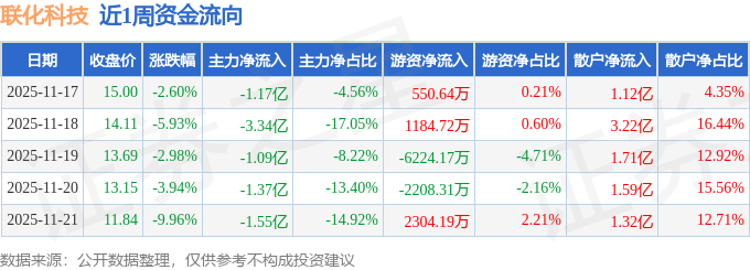 资金流向数据方面,本周联化科技主力资金合计净流出8.53亿元,游资资金合计净流出4392.94万元,散户资金合计净流入8.97亿元。本周资金流向一览见下表:
