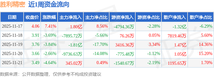 资金流向数据方面,本周胜利精密主力资金合计净流出1.74亿元,游资资金合计净流出3617.89万元,散户资金合计净流入2.1亿元。本周资金流向一览见下表: