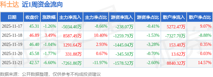 资金流向数据方面,本周科士达主力资金合计净流出2085.19万元,游资资金合计净流出4866.91万元,散户资金合计净流入6952.1万元。本周资金流向一览见下表: