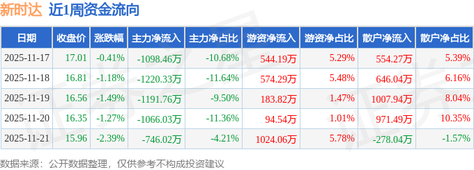 资金流向数据方面,本周新时达主力资金合计净流出5322.6万元,游资资金合计净流入2420.9万元,散户资金合计净流入2901.7万元。本周资金流向一览见下表: