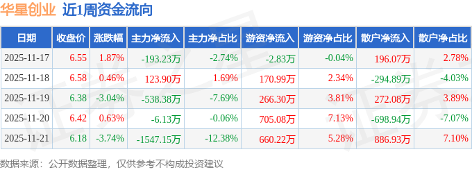 资金流向数据方面,本周华星创业主力资金合计净流出2161.0万元,游资资金合计净流入1799.76万元,散户资金合计净流入361.24万元。本周资金流向一览见下表: