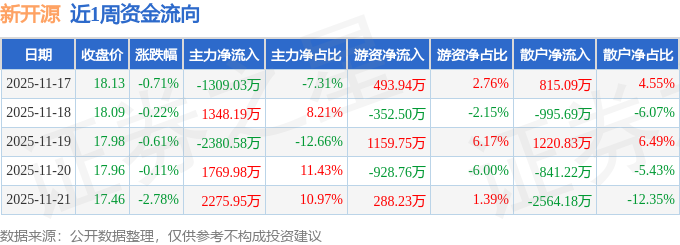 沪深股通持股方面,截止2025年11月21日收盘,新开源深股通持股数为159.02万股,占流通股比为35.0%。