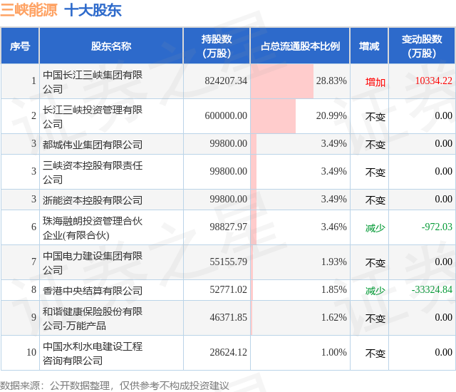 根据三峡能源2025年三季报公布的十大股东详情如下: