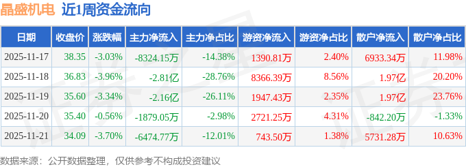 资金流向数据方面,本周晶盛机电主力资金合计净流出6.64亿元,游资资金合计净流入1.52亿元,散户资金合计净流入5.12亿元。本周资金流向一览见下表:
