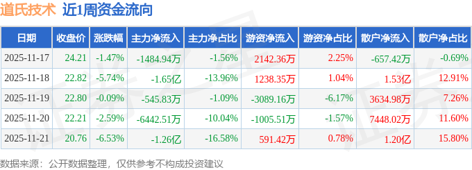 资金流向数据方面,本周道氏技术主力资金合计净流出3.76亿元,游资资金合计净流出122.53万元,散户资金合计净流入3.77亿元。本周资金流向一览见下表: