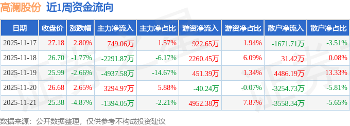 资金流向数据方面,本周高澜股份主力资金合计净流出4579.47万元,游资资金合计净流入8546.64万元,散户资金合计净流出3967.17万元。本周资金流向一览见下表: