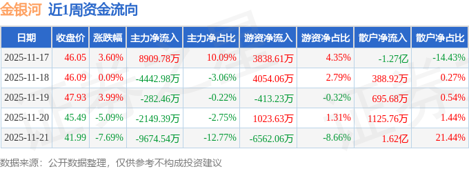 沪深股通持股方面,截止2025年11月21日收盘,金银河深股通持股数为39.29万股,占流通股比为36.0%。