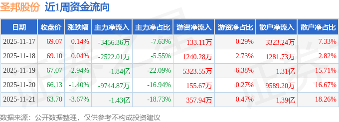 资金流向数据方面,本周圣邦股份主力资金合计净流出4.84亿元,游资资金合计净流入7210.55万元,散户资金合计净流入4.12亿元。本周资金流向一览见下表: