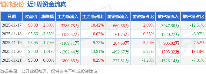 资金流向数据方面,本周恒帅股份主力资金合计净流入3773.76万元,游资资金合计净流入216.61万元,散户资金合计净流出3990.37万元。本周资金流向一览见下表: