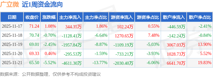 资金流向数据方面,本周广立微主力资金合计净流出7648.73万元,游资资金合计净流出2499.9万元,散户资金合计净流入1.01亿元。本周资金流向一览见下表:
