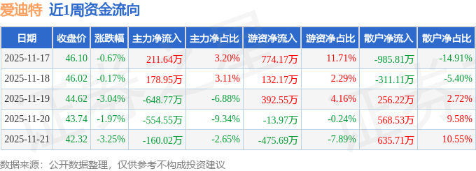 资金流向数据方面,本周爱迪特主力资金合计净流出972.76万元,游资资金合计净流入809.23万元,散户资金合计净流入163.53万元。本周资金流向一览见下表: