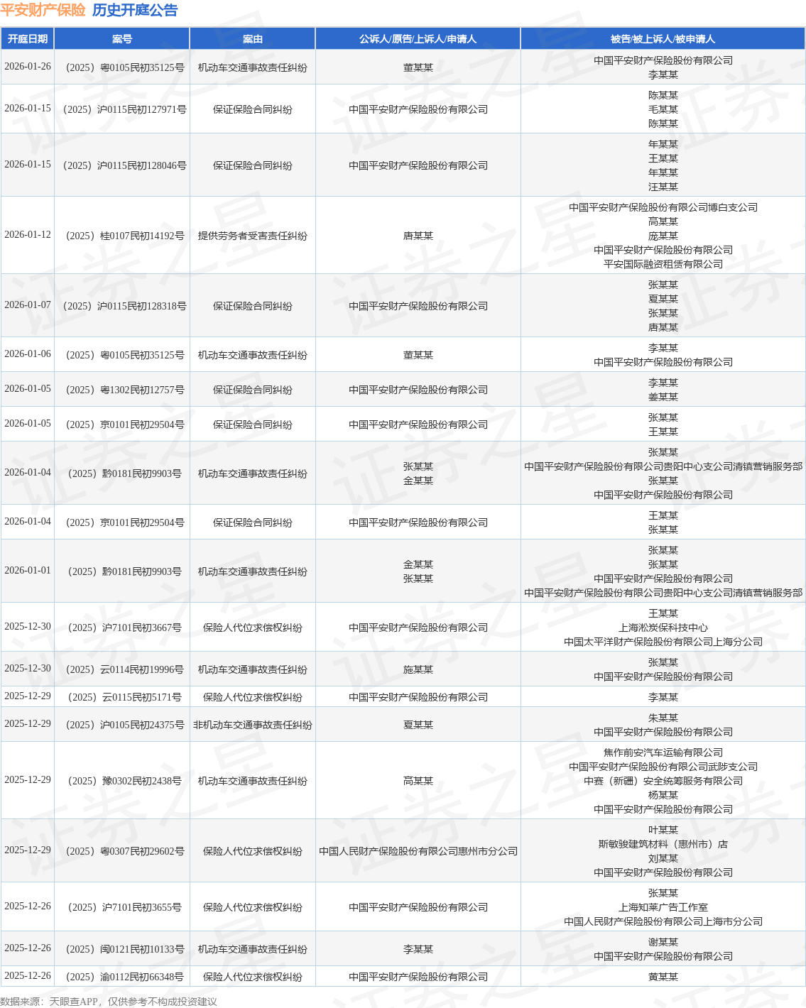证券之星消息,根据天眼查APP显示,近日公布了一则中国平安财产保险股份有限公司作为被告/被上诉人的开庭公告,详细内容如下:
