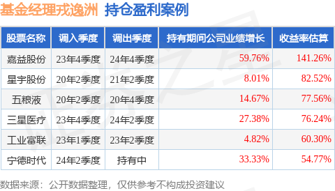 戎逸洲管理的东方红中证优势成长指数发起A基金在23年4季度买入嘉益股份,在持有1年又0个季度后在24年4季度卖出。持有期间的估算收益率为141.26%,持有期间嘉益股份在2023年到2024年的年报营业总收入增幅达59.76%。