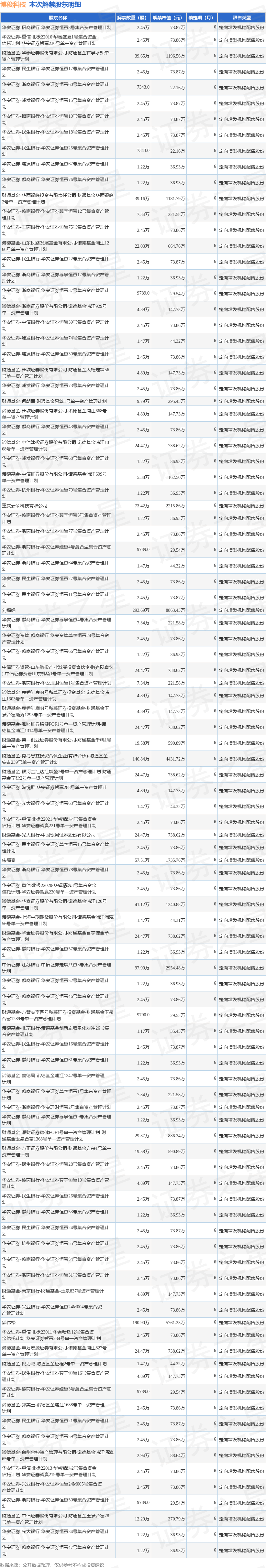 证券之星消息,根据市场公开信息整理,博俊科技(300926)于11月24日将有1468.43万股限售股份解禁,为公司定向增发机构配售股份,占公司总股本3.38%。(本次数据根据历史公告整理得出,实际情况以上市公司最新公告为准)本次解禁后,公司还有1.36亿股限售股份,占总股本31.39%。具体如下图所示: