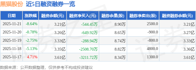 证券之星消息,截至2025年11月21日收盘,黑猫股份(002068)报收于9.3元,下跌8.64%,换手率4.6%,成交量33.79万手,成交额3.27亿元。