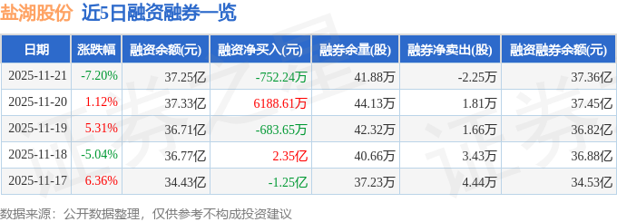 盐湖股份融资融券信息显示,融资方面,当日融资买入7.1亿元,融资偿还7.18亿元,融资净偿还752.24万元。融券方面,融券卖出4.18万股,融券偿还6.43万股,融券余量41.88万股,融券余额1090.56万元。融资融券余额37.36亿元。