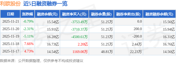 利欧股份融资融券信息显示,融资方面,当日融资买入1.65亿元,融资偿还2.02亿元,融资净偿还3753.49万元。融券方面,融券卖出0.0股,融券偿还0.0股,融券余量51.25万股,融券余额258.3万元。融资融券余额15.56亿元。