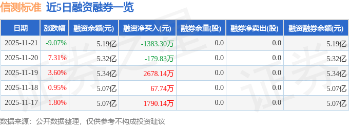 证券之星消息,截至2025年11月21日收盘,信测标准(300938)报收于32.3元,下跌9.07%,换手率11.25%,成交量23.71万手,成交额7.97亿元。