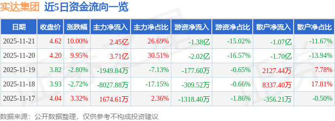 11月21日的资金流向数据方面,主力资金净流入2.45亿元,占总成交额26.69%,游资资金净流出1.38亿元,占总成交额15.02%,散户资金净流出1.07亿元,占总成交额11.67%。