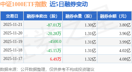 证券之星消息,11月21日,中证1000ETF指数(560010)融资买入872.89万元,融资偿还488.77万元,融资净买入384.13万元,融资余额1192.13万元,近3个交易日已连续净买入累计467.43万元,近20个交易日中有13个交易日出现融资净买入。