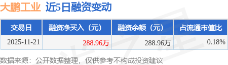 证券之星消息,11月21日,大鹏工业(920091)融资买入316.08万元,融资偿还27.12万元,融资净买入288.96万元,融资余额288.96万元。
