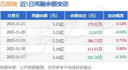 证券之星消息,11月21日,芯朋微(688508)融资买入1909.87万元,融资偿还1630.42万元,融资净买入279.45万元,融资余额5.24亿元。