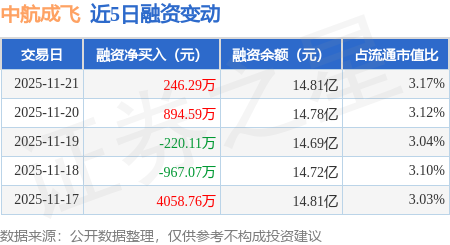 证券之星消息,11月21日,中航成飞(302132)融资买入1.04亿元,融资偿还1.02亿元,融资净买入246.29万元,融资余额14.81亿元。