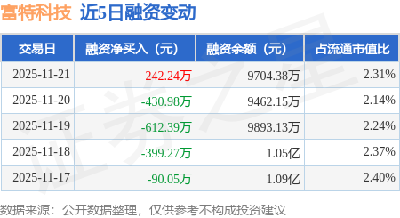 证券之星消息,11月21日,富特科技(301607)融资买入1345.71万元,融资偿还1103.47万元,融资净买入242.24万元,融资余额9704.38万元。
