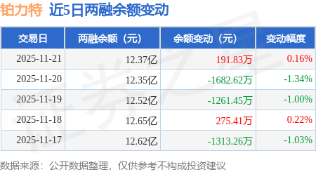 证券之星消息,11月21日,铂力特(688333)融资买入5296.14万元,融资偿还5054.48万元,融资净买入241.66万元,融资余额12.35亿元。