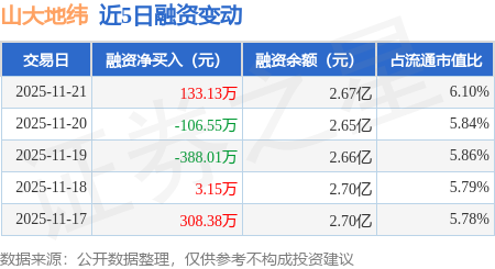 证券之星消息,11月21日,山大地纬(688579)融资买入658.19万元,融资偿还525.06万元,融资净买入133.13万元,融资余额2.67亿元,近20个交易日中有11个交易日出现融资净买入。